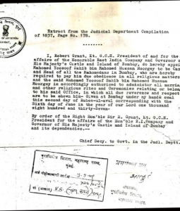 - English Translation of this history helped by Mohammad Javed Murshedkar.Copy of Order issued in 1837, by Robert Grant, Governor of